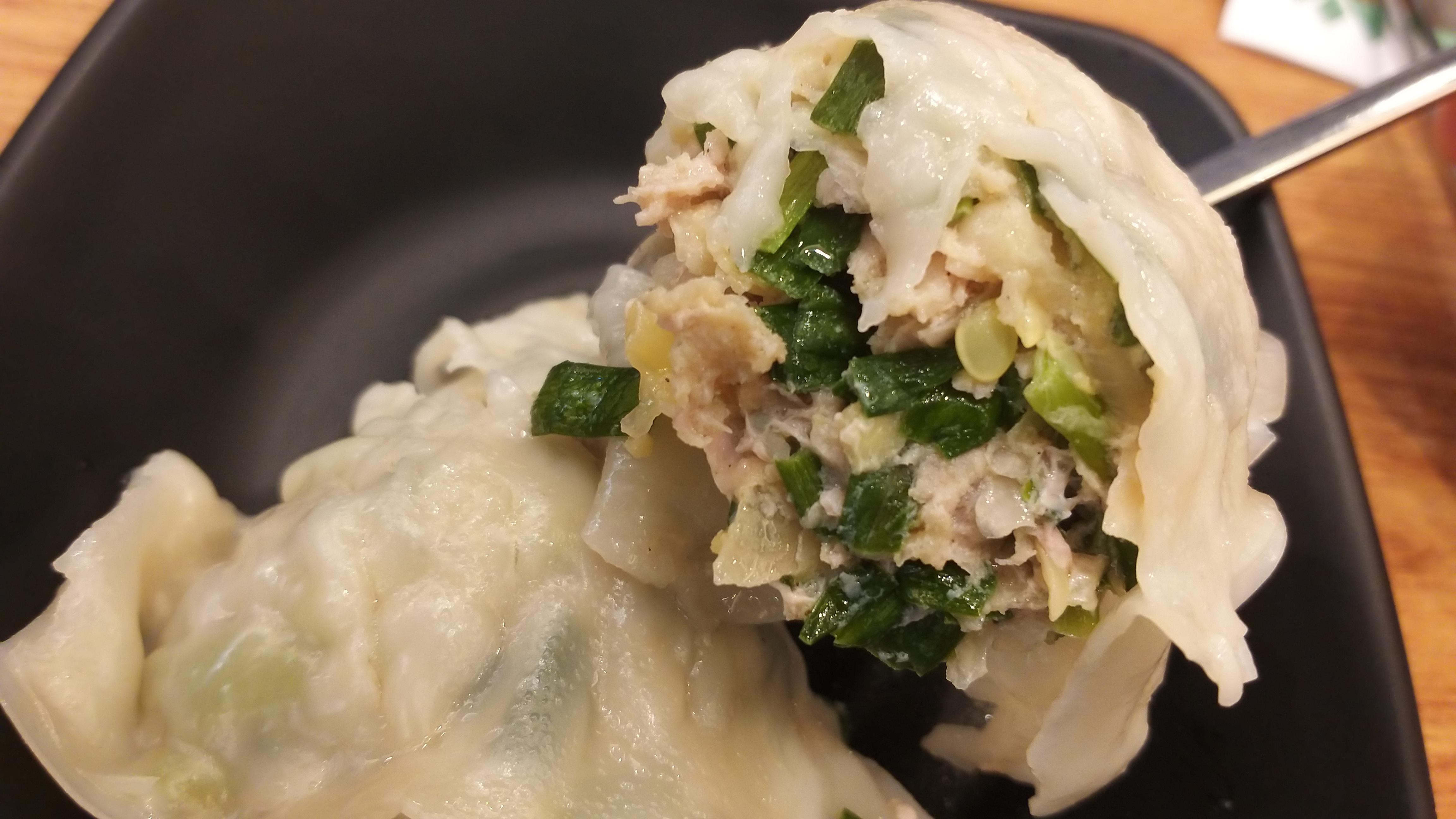 피가 얇아서 만두속이 다 비칠 정도다.