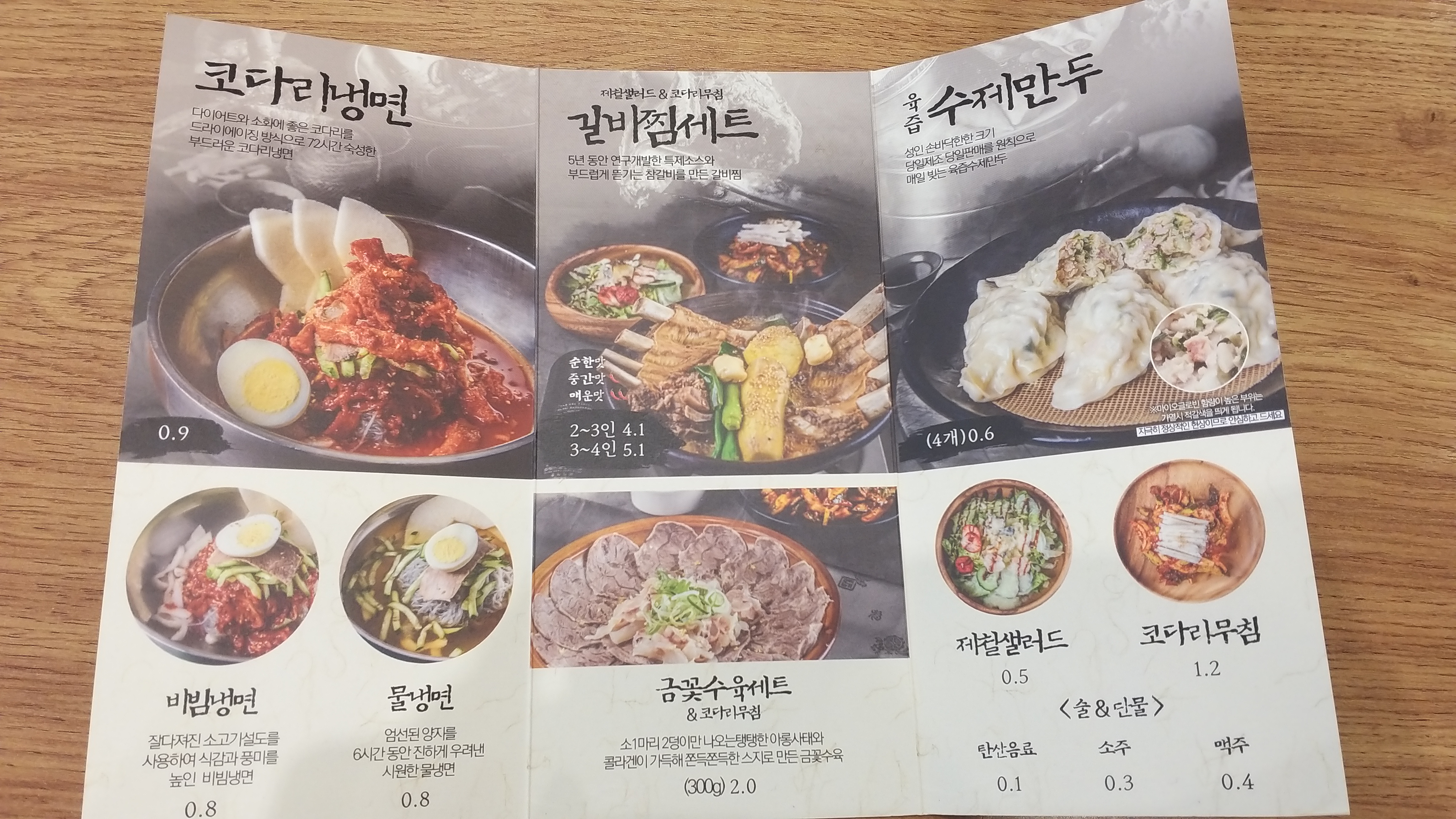 우리는 코다리냉면 2, 수제만두 1 로 주문했다.